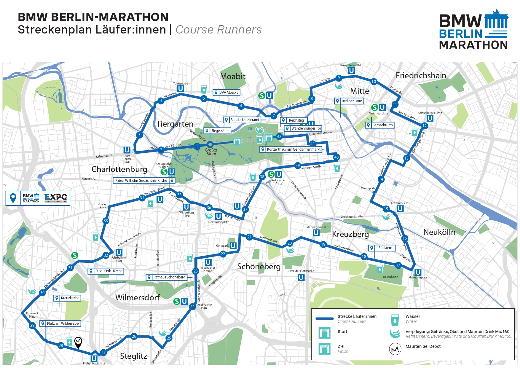 El recorrido del maratón de Berlín destaca por su diseño plano y rápido, ideal para establecer marcas personales. Con avenidas largas y anchas, se evita la congestión de corredores, y su circuito circular con salida y meta en el Tiergarten optimiza la experiencia tanto para los atletas como para los espectadores. Además, al transcurrir por el corazón de Berlín, ofrece una oportunidad única para combinar el deporte con el turismo.